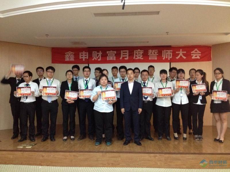 昨天是六月的最后一天,也是2014年上半年的最后一天,是鑫申财富举办的第十次誓师大会。上半年已经过去,鑫申财富用了不到一年的时间,实现了多项从零到一的突破,各方面的工作都在以成倍的速度良好发展,可喜的势头十分振奋人心。然而,行百里路者半九十,万丈高楼平地起。只有戒骄戒躁,团结一致,坚持努力,我们才能保持发展,实现目标,战无不胜。