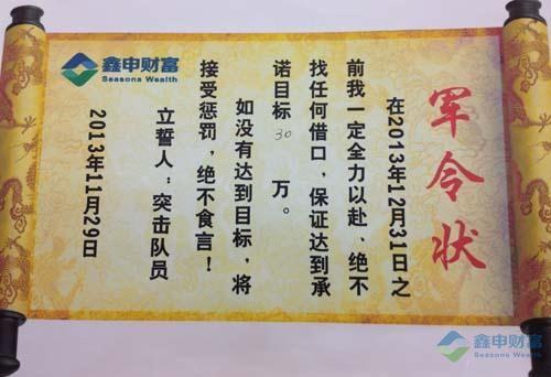 年底将至,各种好消息缤纷传来,鑫申财富南京分公司将在下周成立;鑫申财富即将成为江苏股权交易中心交易商会员;鑫申财富在苏州干将路上的第一家实体店即将开业;鑫申财富受邀参加福布斯中文财富论坛...这意味着鑫申财富正逐渐扩大在华东地区的商业网络和全国范围内的管理半径,意味着鑫申员工们肩上的任务加重了,意味着鑫申财富得到了更高的认可,影响力逐渐扩展到全国,这一切对于我们开拓市场有很大的帮助。