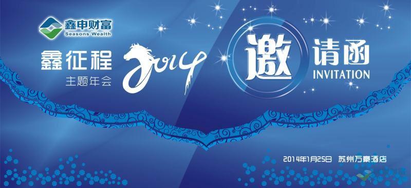 蛇吐瑞气辞旧岁,马到成功迎新年。在这辞旧迎新之际,鑫申财富将于2014年1月25日在苏州万豪酒店(苏州市姑苏区干将西路1296号,地铁1号线西环路站3号出口,苏州市政府对面)举办“鑫征程2014”主题年会,我们诚挚邀请您出席本次年会。本次年会旨在向您展示鑫申财富2013年努力的成果,并和您一起展望我们的2014年鑫征程。同时,为了能与您交流思想、拉近感情,我们还为您准备了丰富的文化艺术表演及精致的美味佳肴。