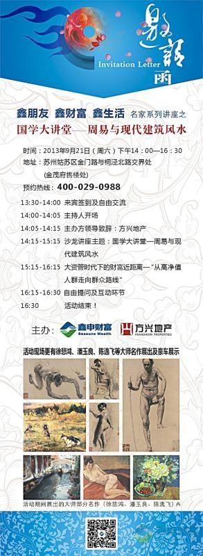 高端财富管理品牌与品牌奢装豪宅的碰撞,财富与国学的交汇,会擦出怎样的火花?本周六(9月21日),鑫申财富与你相约姑苏金茂府,共同品味财富与国学的盛宴。现场更有价...