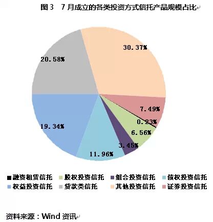 从投资领域来看,其他投资信托是7月成立的产品发行规模最大的,高达131.64亿元,占总规模的30.37%。本月发行的其他投资信托124只,比上月增加17只,规模减少17.95亿元。