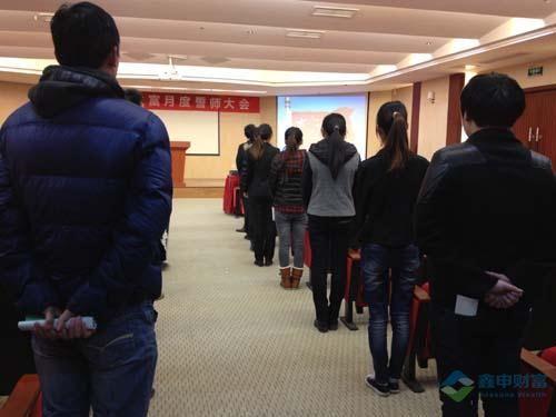 昨天下午(11月29日),鑫申财富销售部十二月誓师大会在总部会议室如期召开。鑫申财富总裁高斌及总部所有员工出席此次大会。