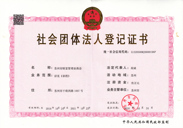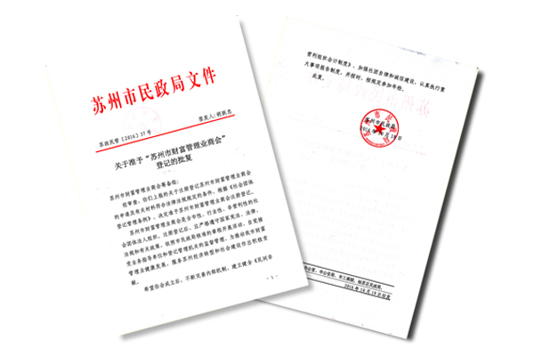 近日,由鑫申财富集团作为主要发起人的苏州市财富管理业商会正式得到苏州市工商业联合会、苏州市总商会的同意成立批复,并获得苏州市民政局的准予设立批复,在完成了社团验资、民政登记等手续后,取得了苏州市民政局颁发的“社会团体法人登记证书”,宣告正式成立。鑫申财富集团总裁高斌担任商会法定代表人,并将在即将召开的商会成立大会暨一届一次会员大会上,作为候选人参加商会会长选举。