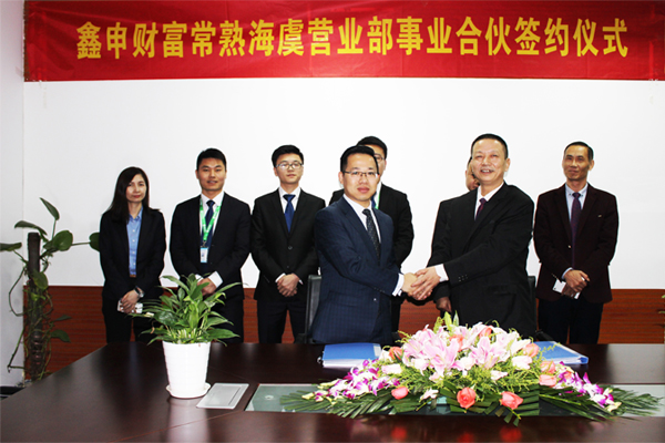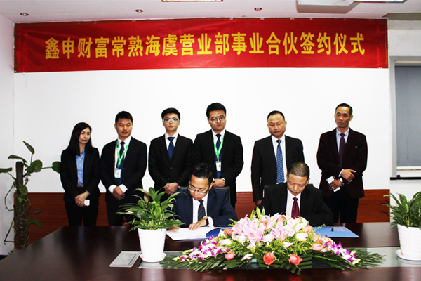 2016年11月17日,鑫申财富常熟海虞营业部事业合伙签约仪式在鑫申财富集团总部举行,集团总裁高斌与常熟分公司事业合伙人卢总签署协议,正式授权常熟分公司事业合伙人卢总、刘总在常熟市海虞镇设立鑫申财富常熟海虞营业部,这也是集团旗下“鑫申财富”品牌在常熟市的首家营业部。