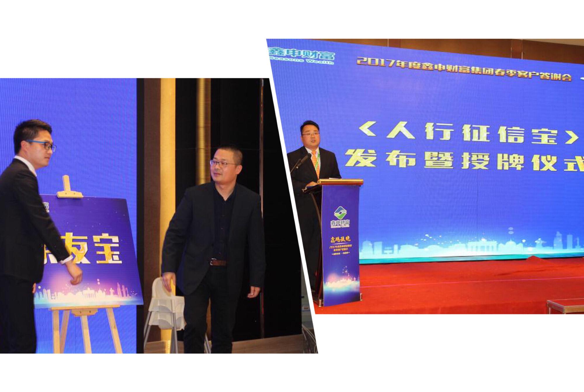 席间,更特设两个信息发布环节,向嘉宾与客户们隆重推介了“人行征信宝”与 “亲友宝”。“人行征信宝”的启用,表明了鑫申致力于为广大投资人提供更公开、更透明、更严谨、更专业服务的决心与信心;“亲友宝”则是鑫申携手知名电影院线、品牌西点公司、商务礼品公司等合作伙伴开展的客户积分兑换活动,以回馈广大客户一直以来对鑫申的支持与厚爱。