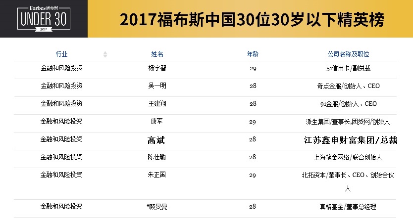 【鑫喜讯】集团总裁入选福布斯中国“30位30岁以下精英榜” 系财富管理行业唯一入选者