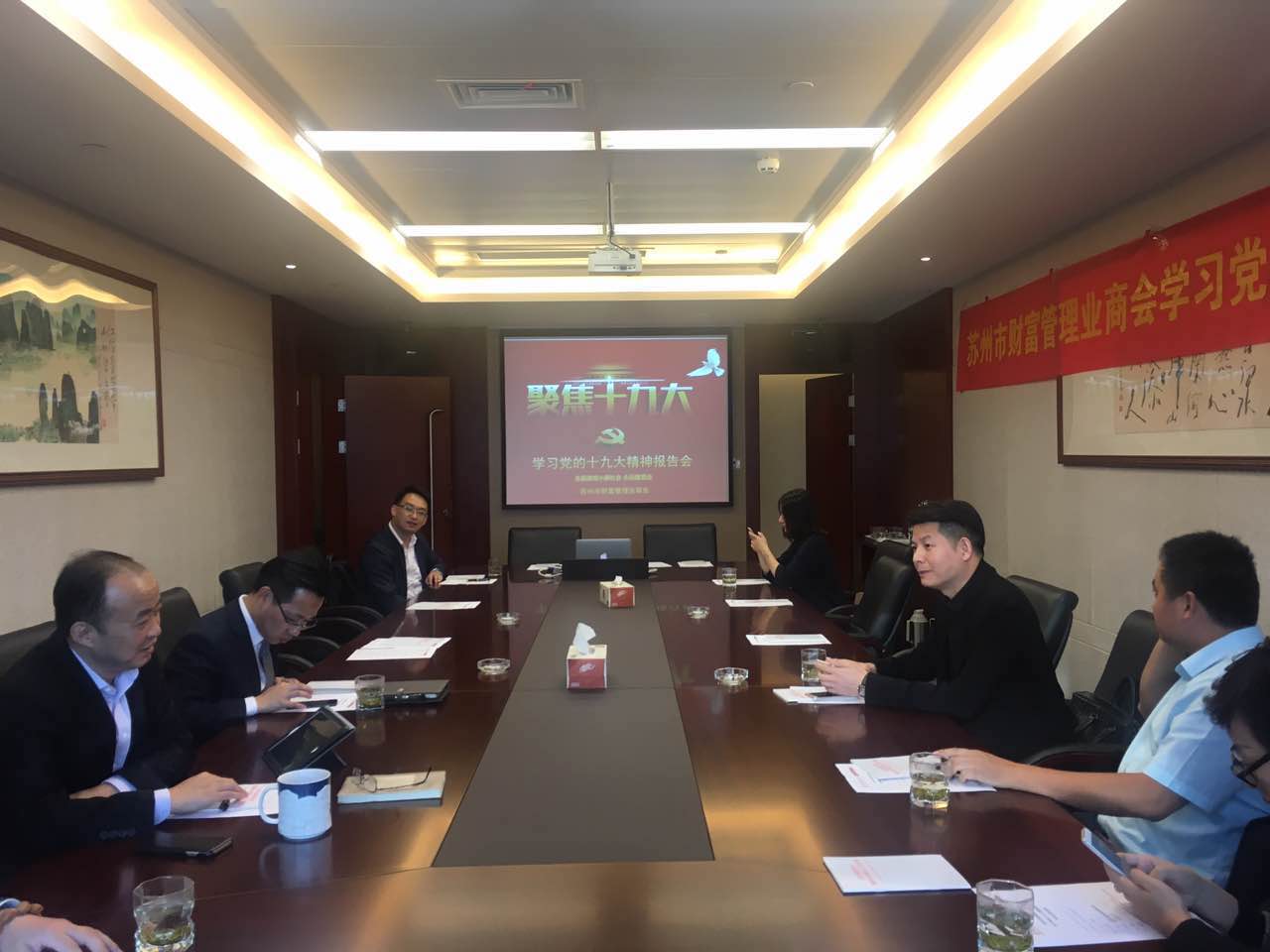 2017年11月2日,在苏州市工商联的指导下,苏州市财富管理业商会开展了学习十九大精神报告会。