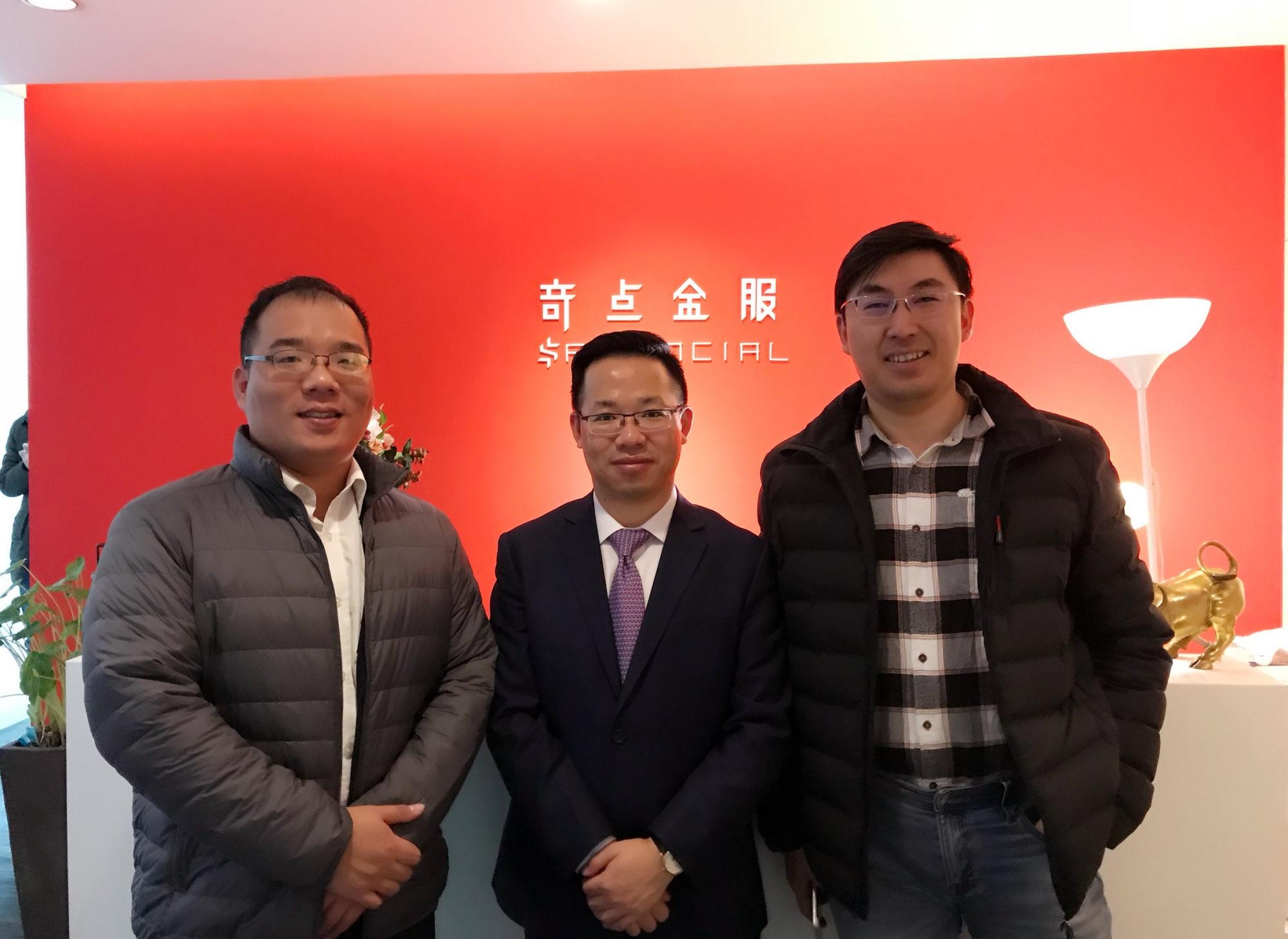 11月24日,鑫申财富集团总裁高斌一行赴奇点金服北京总部,与奇点金服CEO吴一明先生及其核心团队进行了业务合作方面的深入探讨与交流。