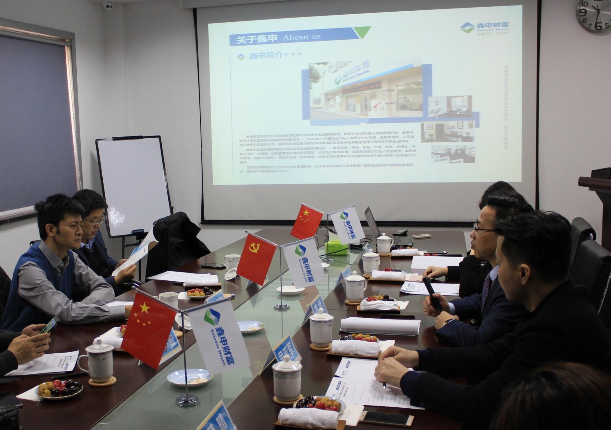 2月28日,长安财富资产管理有限公司(以下简称“长安资产”)总经理徐晓刚一行莅临苏州市财富管理业商会及会长单位鑫申财富集团进行调研,并与鑫申财富高层进行了会谈。