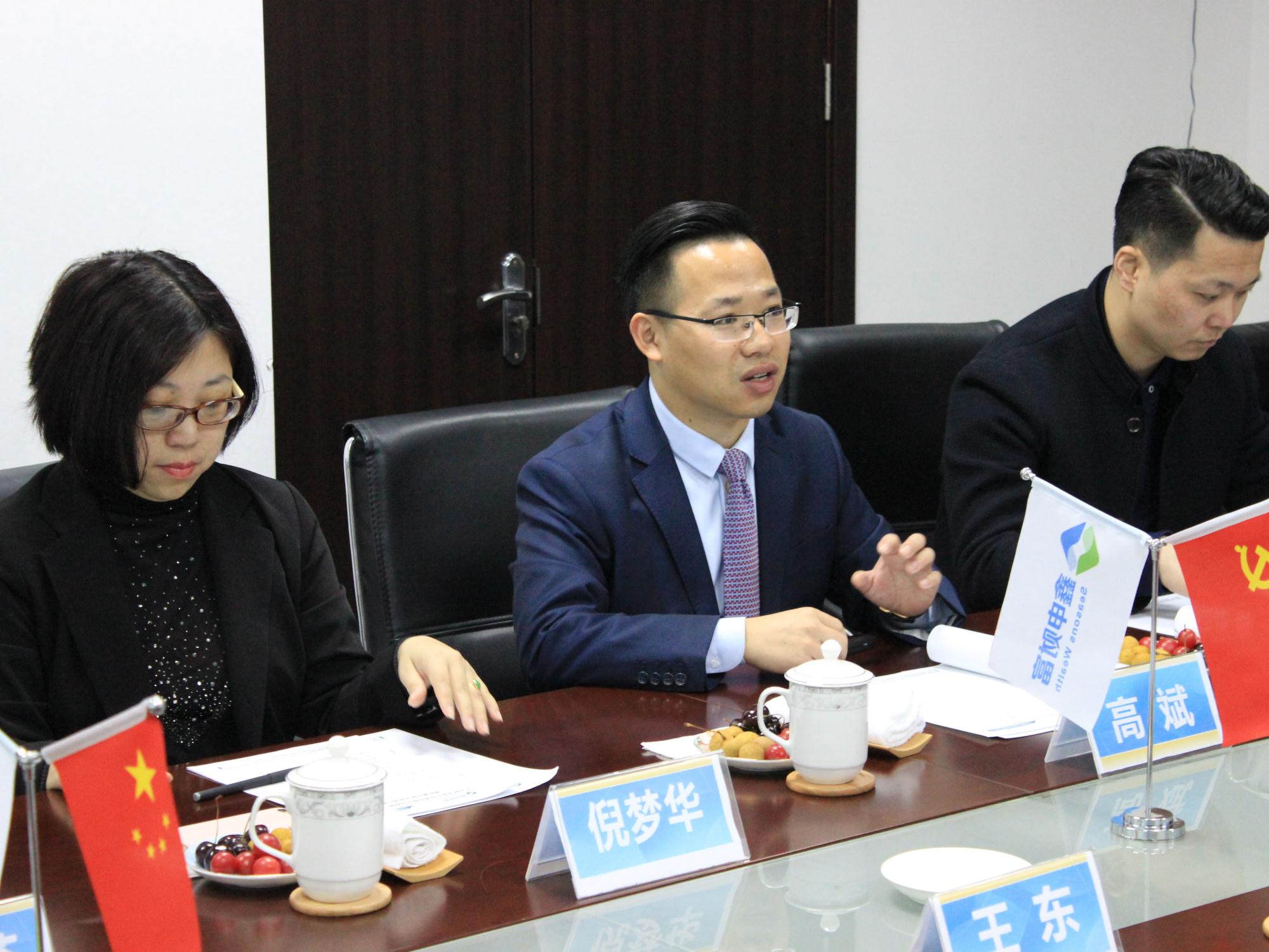 随后,长安资产方面领导与鑫申财富集团高层就长安资产设立苏州财富中心、长安资产与鑫申财富业务合作等方面进行了会谈。