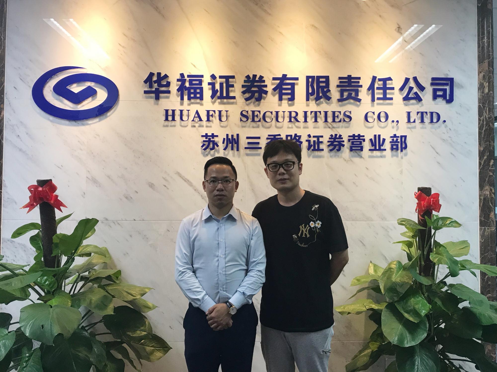 营业部总经理王嘉楷接待了到访的高总一行,并向来宾介绍了华福证券的发展历程,目前在苏州的业务开展情况、擅长领域,以及员工、产品、客户的基本情况等。