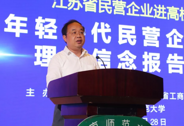 9月28日,江苏省年轻一代民营企业家理想信念报告会在南京师范大学召开。本次理想信念报告会同时也是创业创新分享会,是今年江苏民营企业进高校“三个一”活动(一场创业创新分享会、一场企业人才招聘会、一场校企产学研对接会)的重要内容之一。中共江苏省委统战部副部长、省工商联党组书记顾万峰出席会议并讲话。苏州市财富管理业商会会长、鑫申财富集团总裁高斌作为省内年轻一代民营企业家的优秀代表参加报告会。