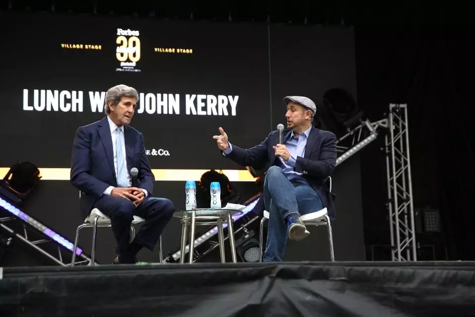 美国前国务卿约翰·克里(John Kerry),参加福布斯U30峰会并出席讨论活动
