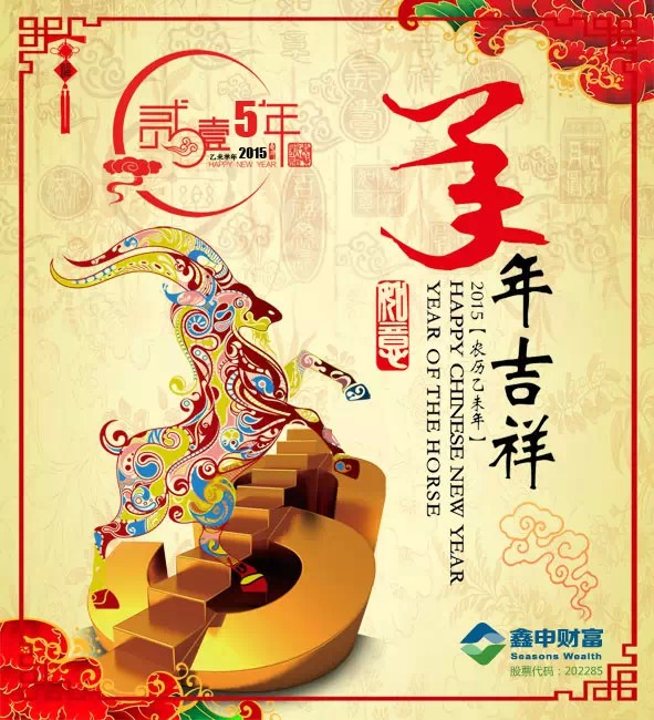 今日除夕,新年的钟声即将敲响,2015年的脚步如期而至,感谢各位看官一年来对鑫申财富的大力支持,羊年我们一定更加努力,为您提供更优质更周到的服务!在此小编谨代鑫申财富全体员工向所有关注关心鑫申的朋友们表示由衷的感谢,感谢您对我们工作的支持和信任,在这里提前祝您:幸福未年自由徜“羊”,羊年奋起登高攀岩。吉“羊”如意勤劳致富,牵动羊头富庶流油。抓把羊毛“羊”财不断,捋下羊须增添寿禄。祝您羊年,福禄寿康来报到!
