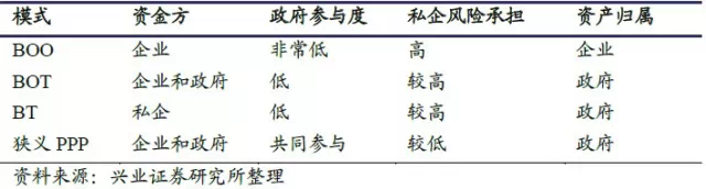 表2、狭义的PPP 与BT、BOT 等模式比较