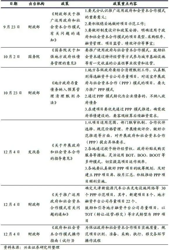 表4、近期推出的关于政府和社会资本合作政策