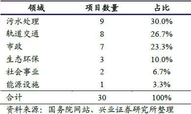 表14、财政部示点30 个PPP 项目领域分布