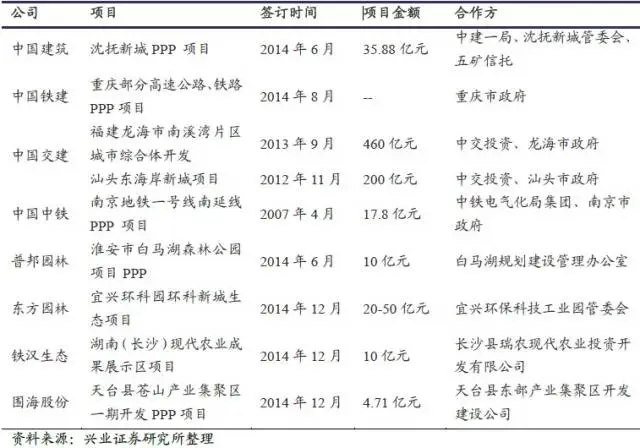 3、PPP 模式的尝鲜者,建筑企业纷纷试水PPP 项目
