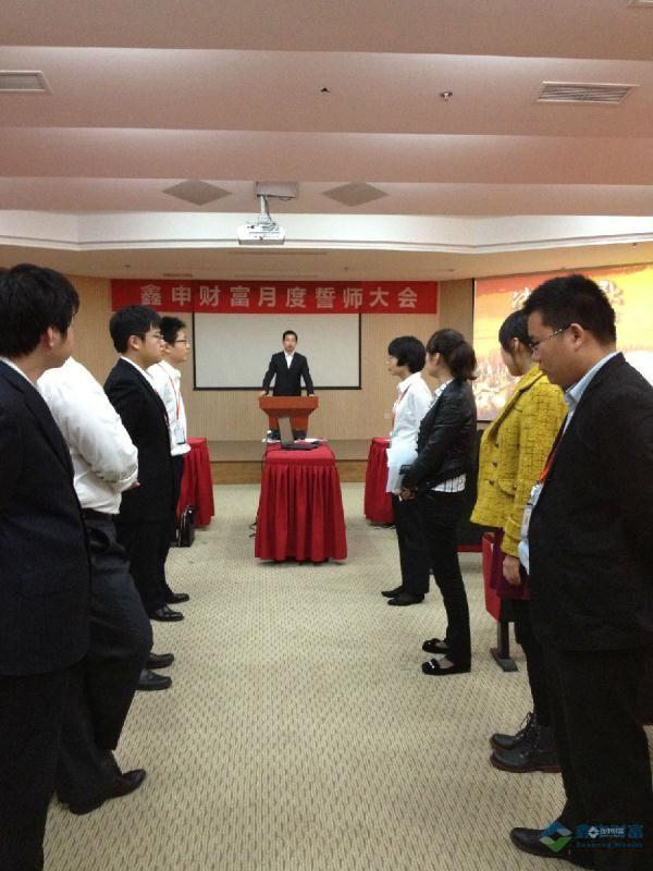 昨天下午(10月31日),鑫申财富财富管理总部的所有销售人员参加了公司销售部11月誓师大会。总裁高斌在大会上发表了动员讲话,随后,所有突击队员一一上台宣读慷慨激昂的军令状,并合唱队歌《相信自己》。队员们个个气势雄厚,彰显了鑫申员工不达目标誓不罢休的高昂士气。