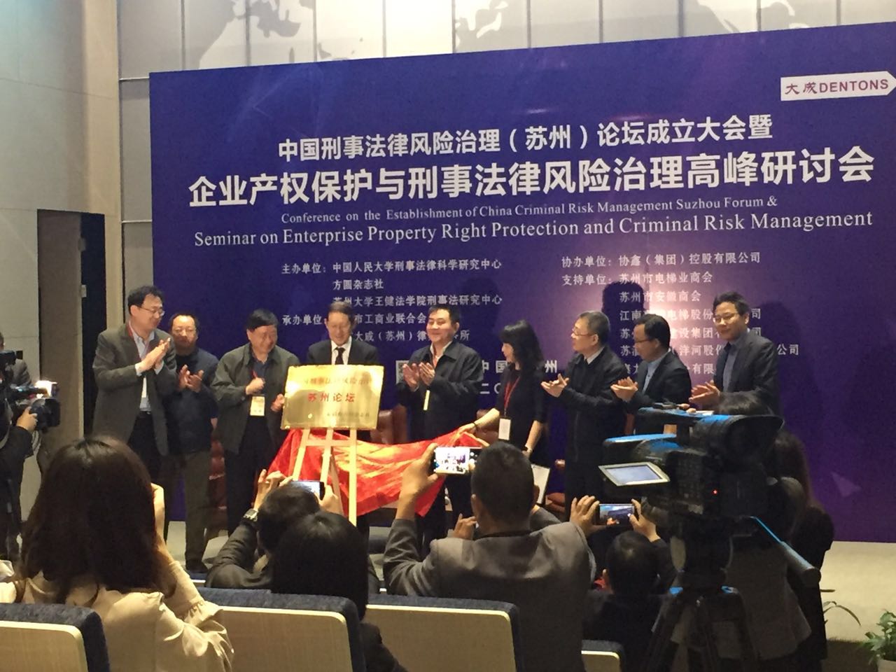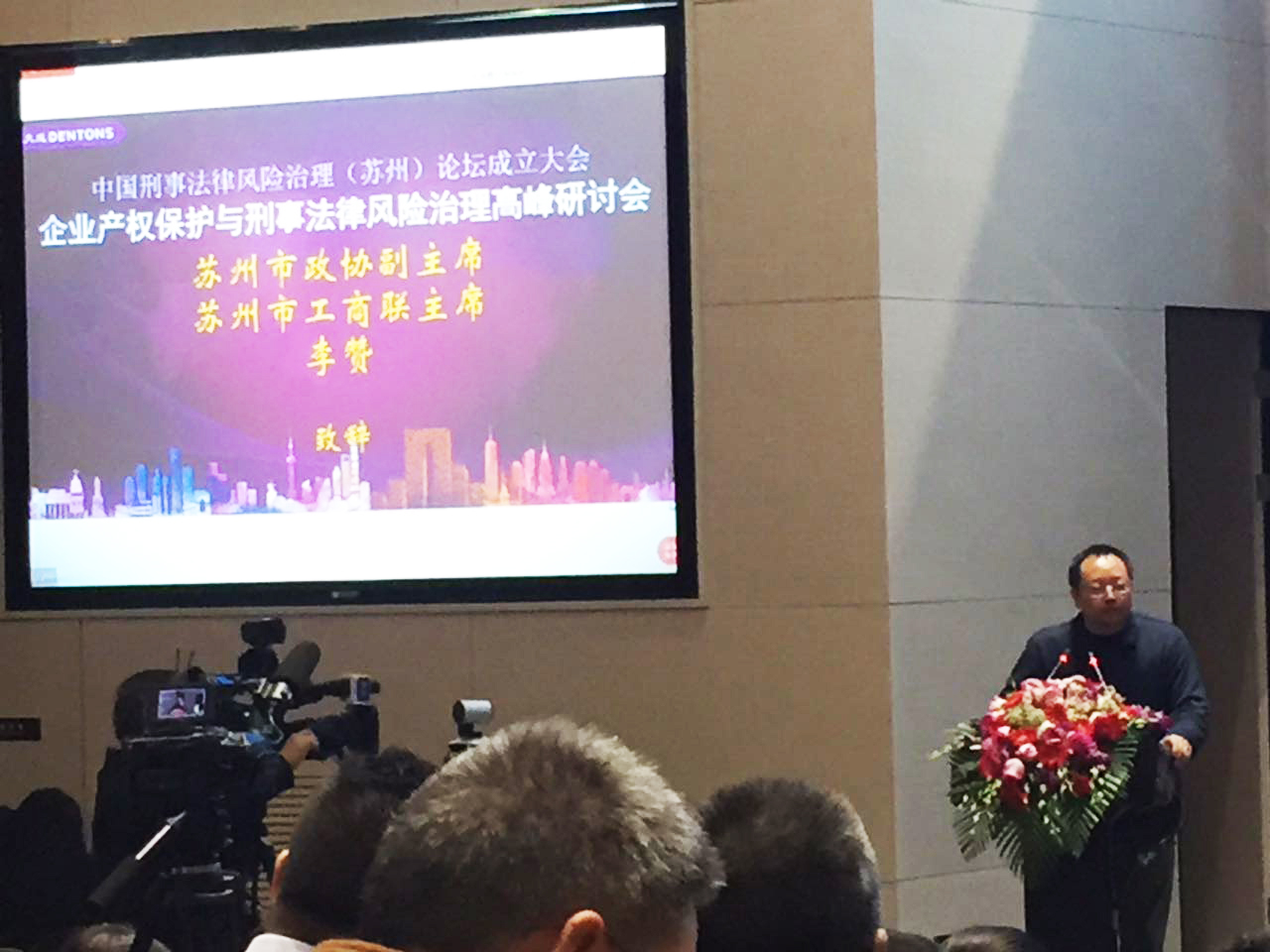 4月8日,中国刑事法律风险治理(苏州)论坛成立大会暨企业产权保护与刑事法律风险治理高峰研讨会于苏州大学独墅湖校区成功举办,市政协副主席、市工商联主席李赞,市工商联副主席邱良元及鑫申财富集团总裁高斌等出席相关活动。