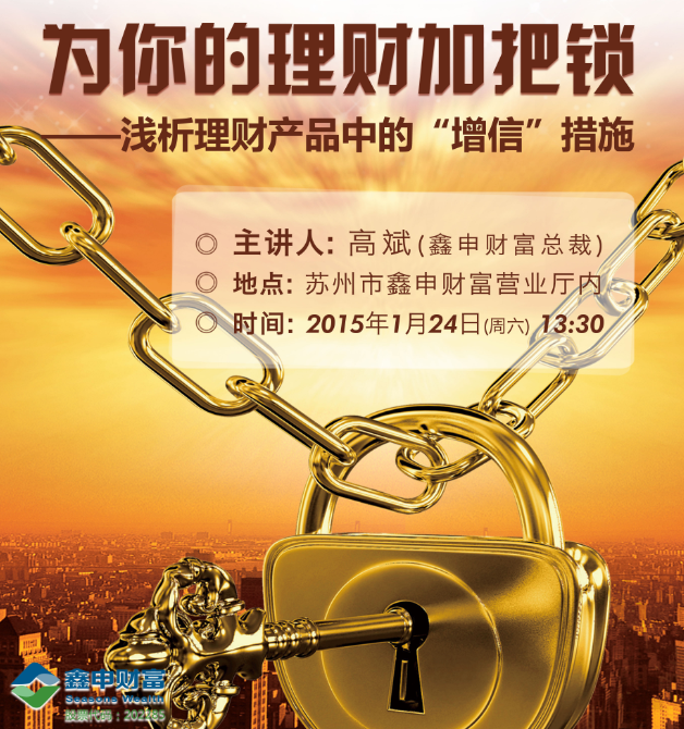 每拿到一份理财产品的时候,我们不仅要关注它的收益率,它的安全性也是很重要的,您是否关注过所购买的理财产品中风控措施和增信措施?本周六,鑫讲座系列就将带您一起解读...