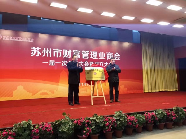 1月13日下午,苏州市财富管理业商会一届一次会员大会暨成立大会在苏召开,商会全体会员参加了大会。苏州市工商联主席李赞,市民政局副局长胡跃忠出席了成立大会。